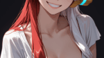 Naked redhead on a Harley Davidson. Vintage Anime.