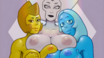 1 Yellow, White and Blue Diamond by arcticsap. Upscaled to HD. Tags: Steven Universe, boobs, breasts, yuri, fanart.