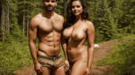 Nudist couple at the forest